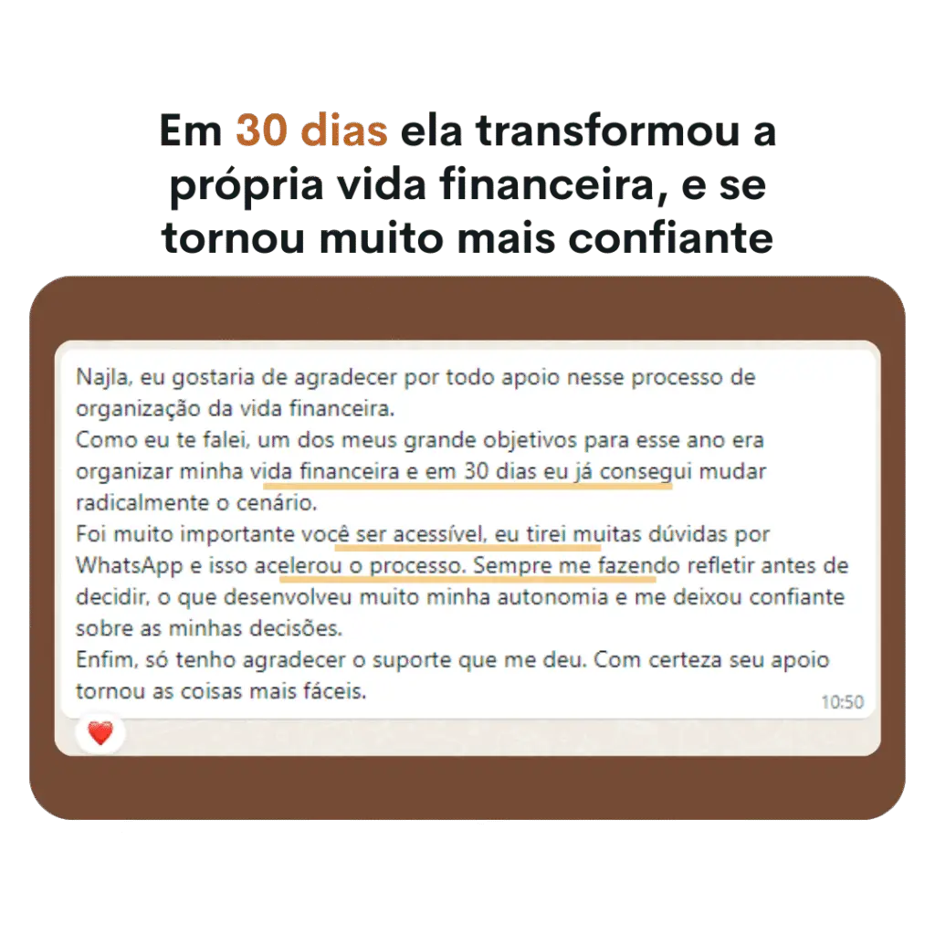 Em até 30 dias, você terá controle e verá o dinheiro sobrar, mesmo com uma rotina cheia e sem precisar faturar mais. Mesmo que você já tenha tentado planilhas, aplicativos, cursos e não tenha conseguido manter a organização